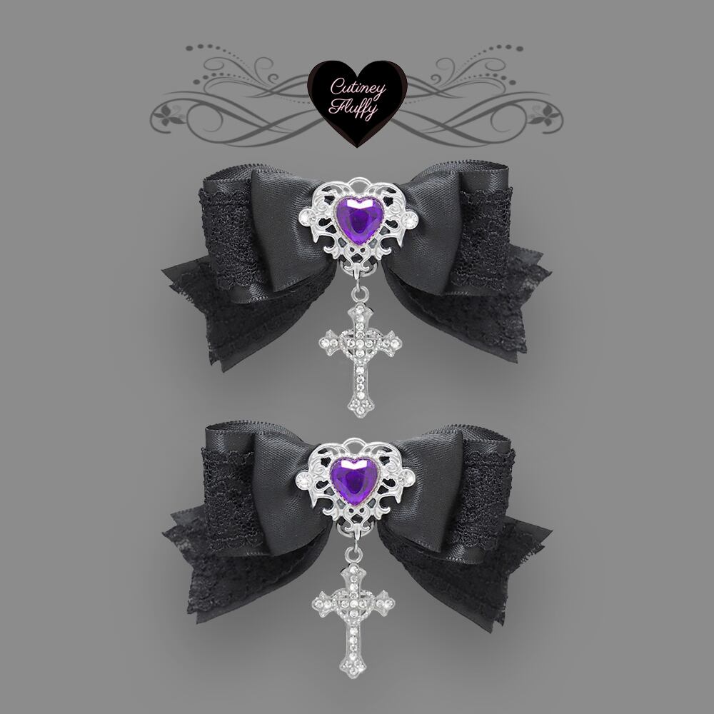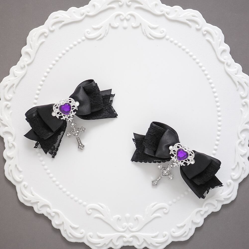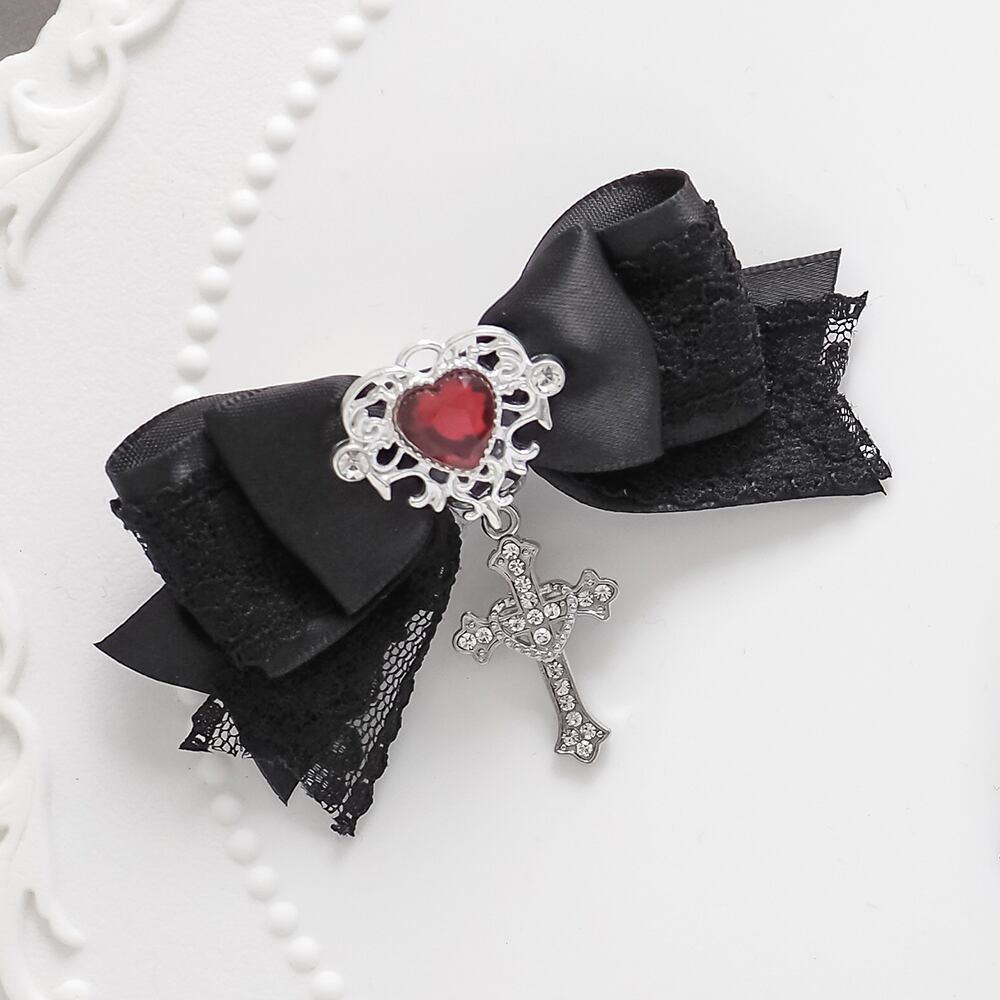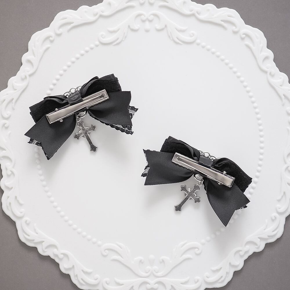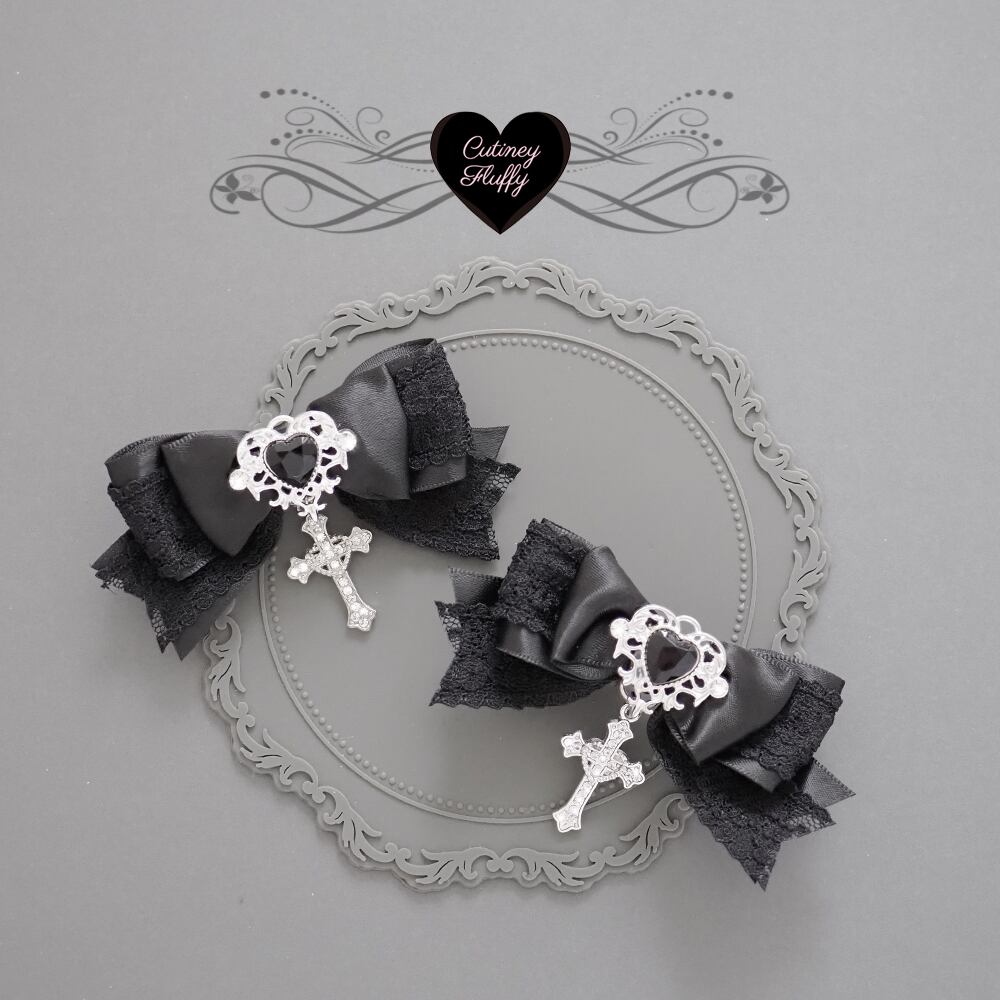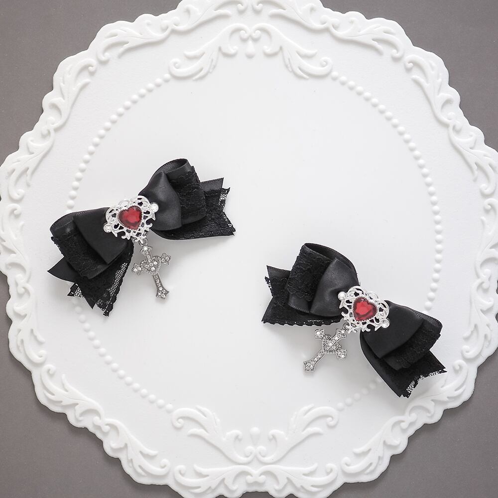 ヘアクリップ リボン 十字架 量産型 地雷 ゴシック クロス ゴスロリ 赤 黒 卒業式 卒園式 結婚式 パール